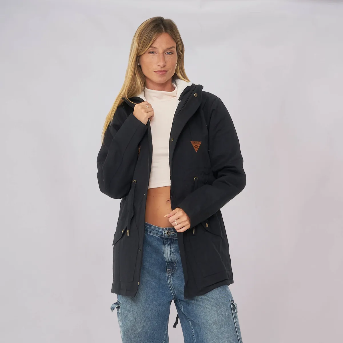 Nuestra PARKA PRAGA, esta confeccionada en gabardina verde/negro por fuera y en corderito sintético blanco por dentro, y viene con capucha. Trae tiras ajustables a la altura de la cintura, para hacerla más o menos entallada y su esplada cuenta con una terminación cola tiburon. En sus laterales inferiores trae bolsillos y un parche para poder customizarla!