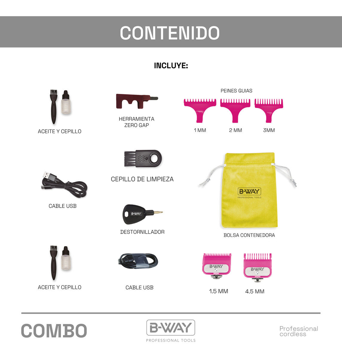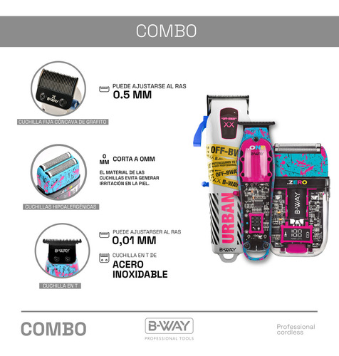 COMBO PROFESIONAL BWAY – URBAN CLIPPER + ONE TRIMMER + ZERO SHAVER