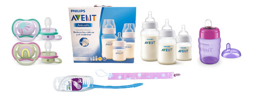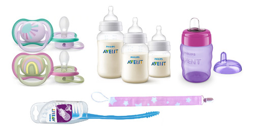 Set Recien Nacido Avent Classic ® 3 Mamaderas 2 Chupetes Cepillo Vaso Clip Nena